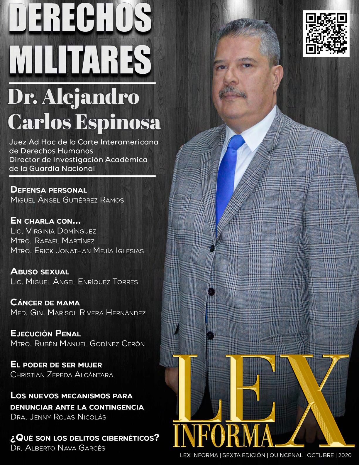 El pasado 29 de septiembre, Revista LEX INFORMA y su director el Lic. René Castelán Olguín, tuvieron el privilegio de conocer y entablar una charla con el Doctor en Política Criminal, Alejandro Carlos Espinosa, abordando el tema de Derechos Humanos de los Militares.