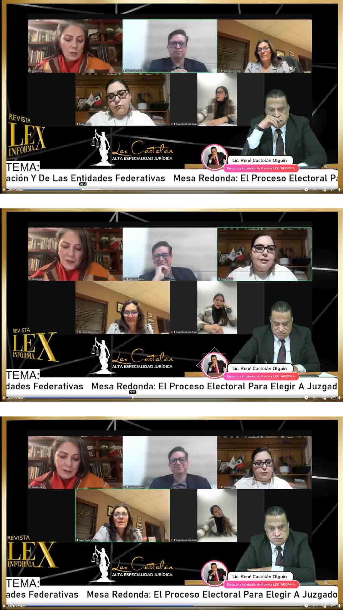 Lic. Yanko Durán Prieto, Consejera Presidenta del Instituto Estatal Electoral de Chihuahua; Dr. José Luis Brahms Gómez, Abogado, Docente Universitario, Conferencista, Humanista y experto del Derecho Electoral Mexicano; Mtra. Julia María del Carmen García González, Magistrada de Circuito, adscrita al Primer Tribunal Colegiado en Materia Administrativa del Segundo Circuito del Poder Judicial de la Federación; Mtra. Blanca Hernández Rojas, Magistrada del Tribunal Electoral del Estado de Tamaulipas, y Mtra. Hortencia María Emilia Molina de la Puente, Magistrada de Circuito, adscrita al Séptimo Tribunal Colegiado en Materia Civil del Primer Circuito, con residencia en la Ciudad de México