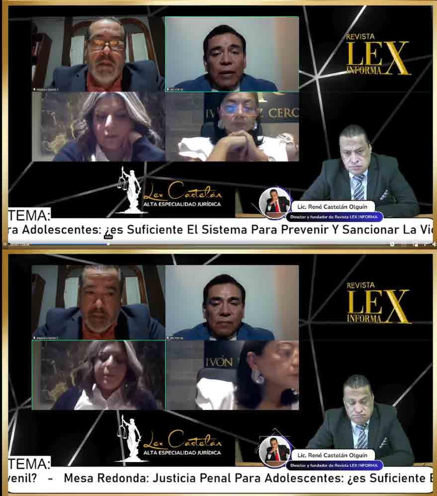 Dr. Alejandro Ramón Fuentes, Ex Magistrado del Tribunal para Menores Infractores del Poder Judicial del Estado de Durango; Mtra. Ivón Ruiz Cerón, Ex Jueza Especializada en Justicia Penal para Adolescentes; Mtra. Rosy Isela Gutiérrez Beltrán, Jueza de Control y Enjuiciamiento Especializada en Justicia Penal para Adolescentes, y Dr. Héctor González Estrada, Juez de Enjuiciamiento del Sistema Procesal Penal Acusatorio del Poder Judicial de la CDMX