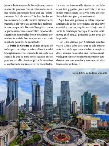 La vista es inmejorable tienes de un lado a los tres gigantes justo enfrente y si das media vuelta tienes la ría y la vista de todo Shanghái a tus pies ¡impresionante! Aquí hay dos paradas la esfera superior ambientada como si estuvieras en una nave espacial y una un poquito más abajo con el suelo de cristal que hace que te sientas totalmente en el aire, al principio da un poco de impresión. Con esto damos por finalizada nuestro viaje a China, debo decir que ha sido mucho más fácil de lo que nunca hubiera imaginado, el idioma no resulto una frontera insalvable, por contrario siempre intentaron ayudarnos con una sonrisa y eso siempre deja buen sabor de boca. v Nuevo distrito de Pudong, Shanghái
