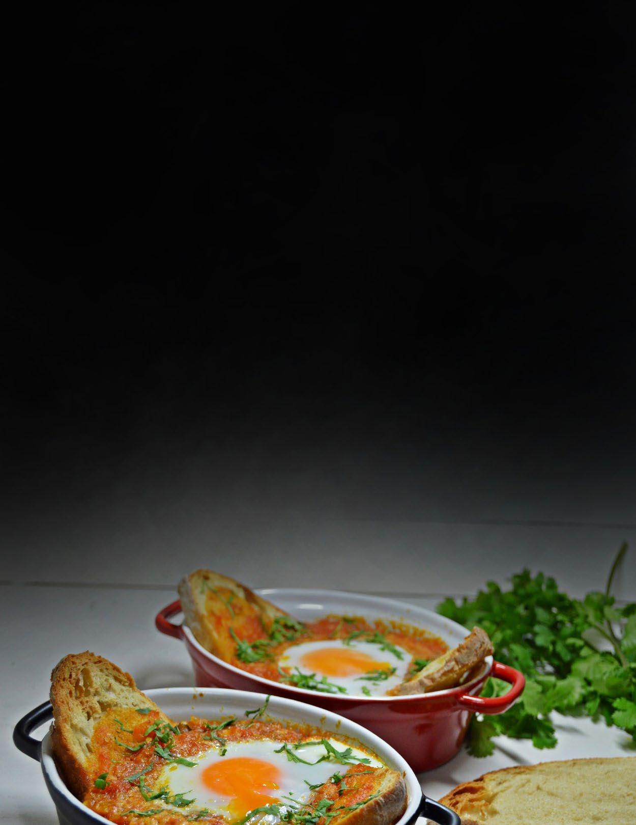 Coloque o pão nos pratos, regue com caldo de coentros e disponha por cima o ovo escalfado. Sirva de imediato. Bom apetite!