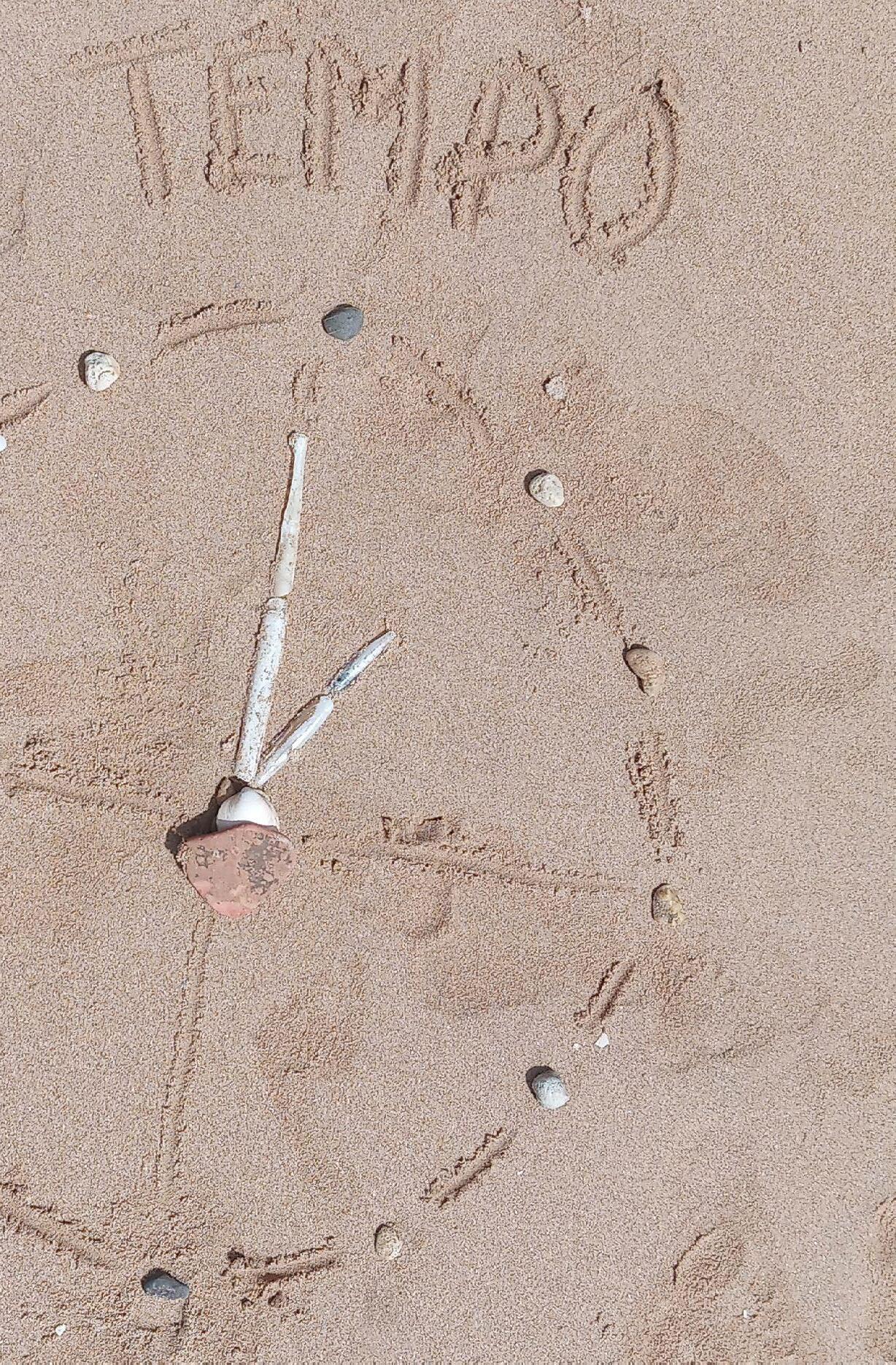 O tempo lento avança nos rostos das gentes. Nas aldeias, o tempo deixa saudades doutros tempos nas casas esventradas. À beira mar, as ondas marcam o tempo na suas idas e vindas no areal. O tempo desenha as horas, os minutos e os segundos nas falésias esculpidas pelo vento, enquanto de forma indelével os banhistas deixam pegadas efémeras.