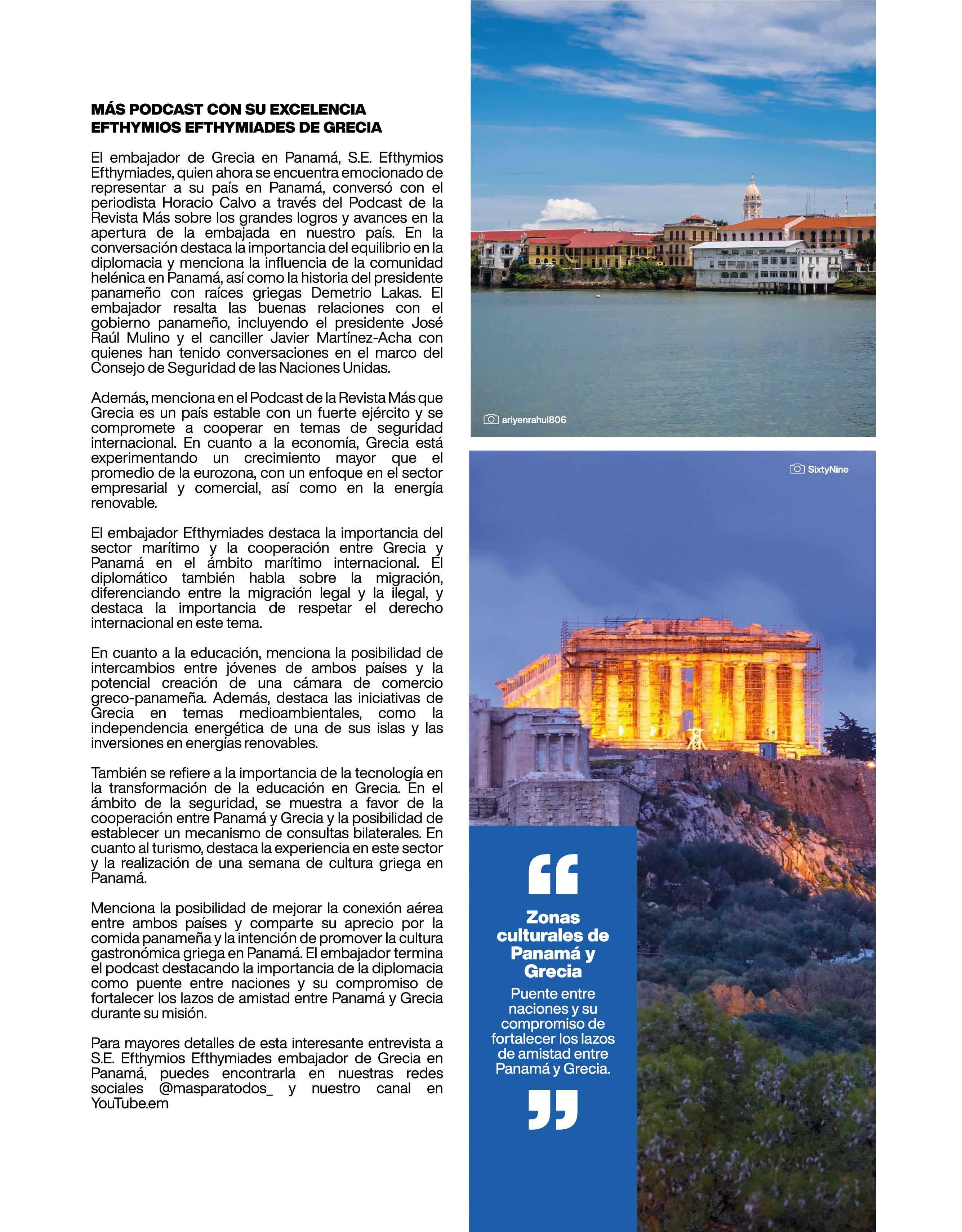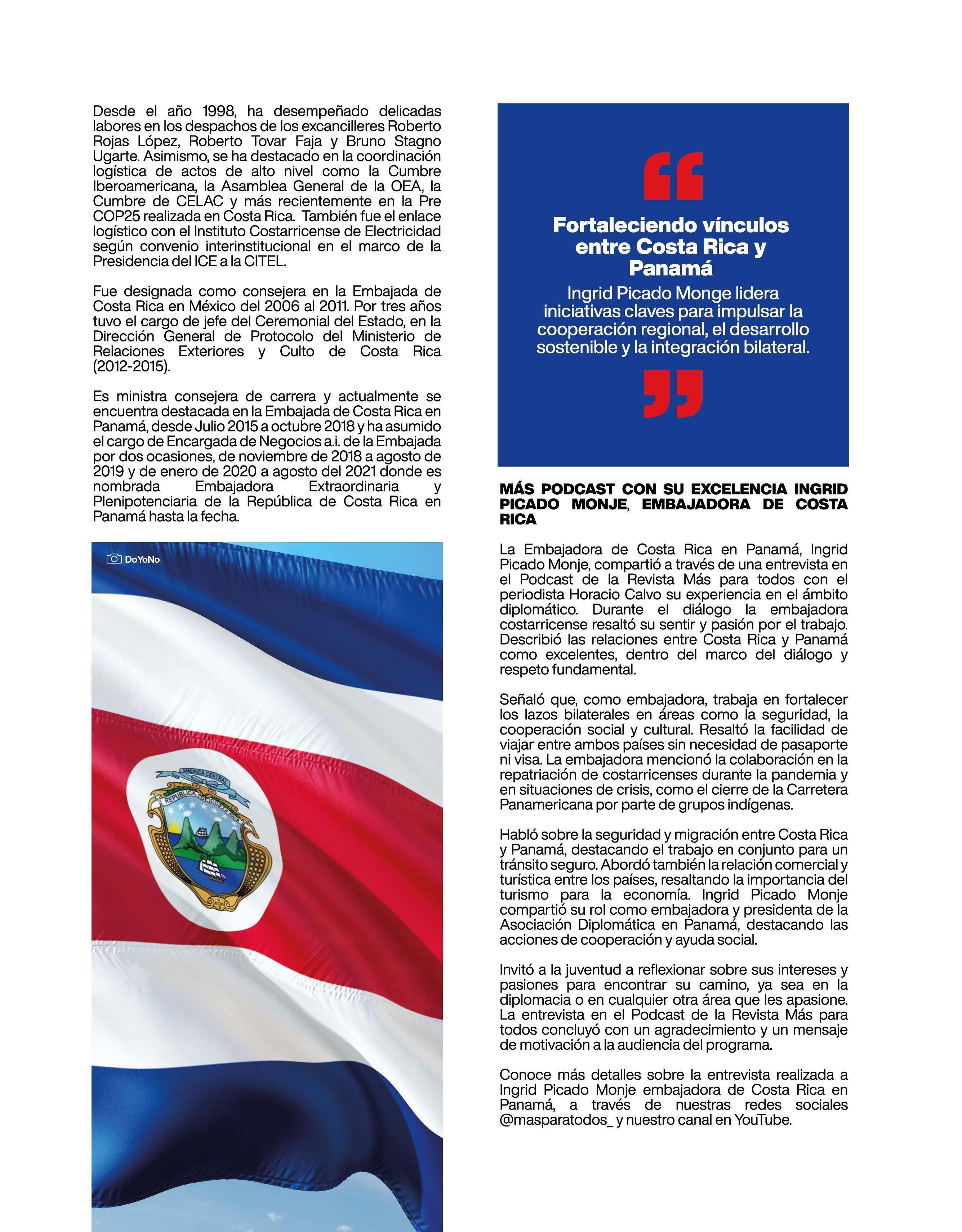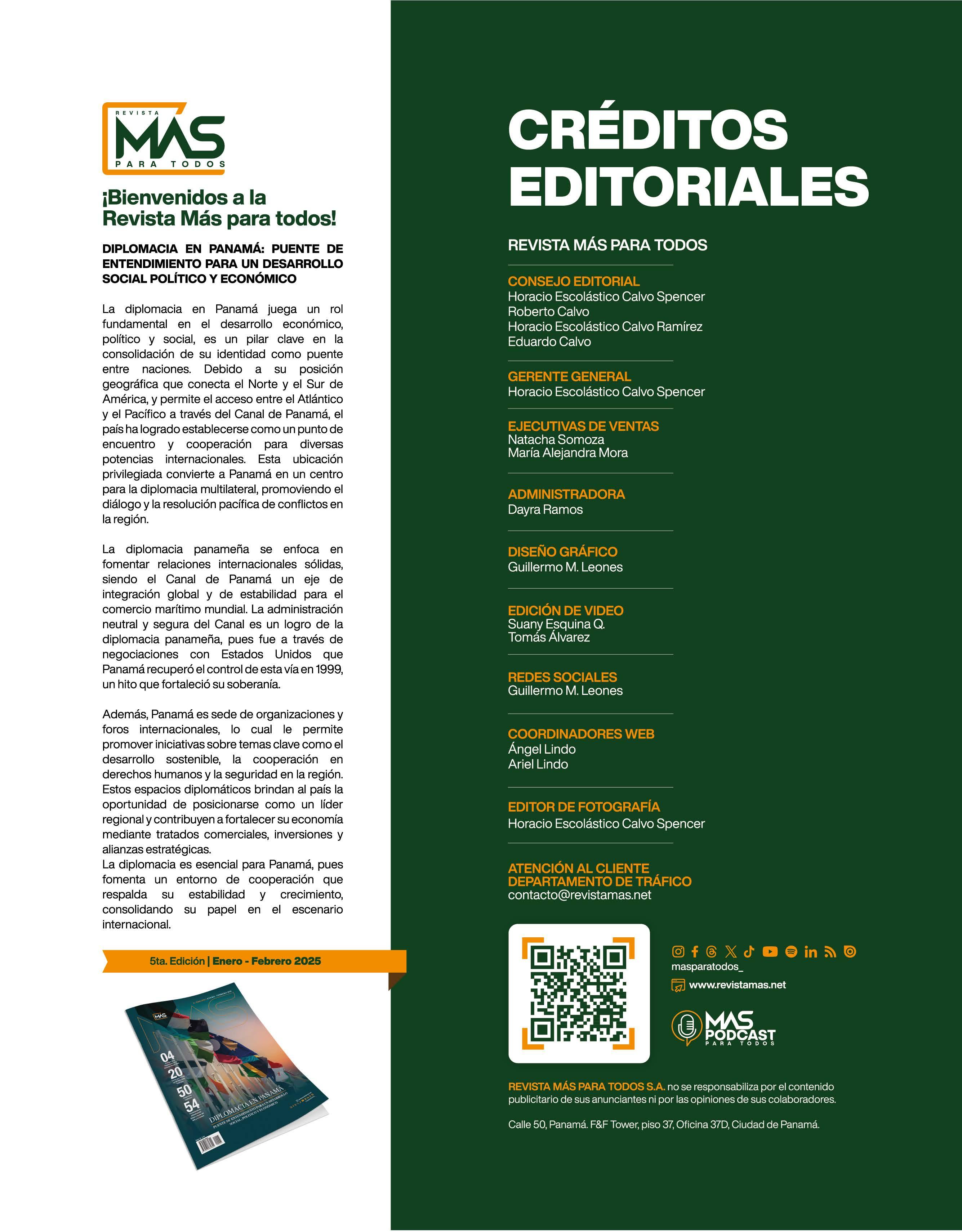 La revista profundiza en el impacto de la diplomacia multilateral, la administración neutral del Canal de Panamá y la participación activa en foros globales. Además, aborda temas cruciales como la sostenibilidad, los derechos humanos y la seguridad regional, resaltando las iniciativas que fortalecen la economía y el liderazgo del país en la región.