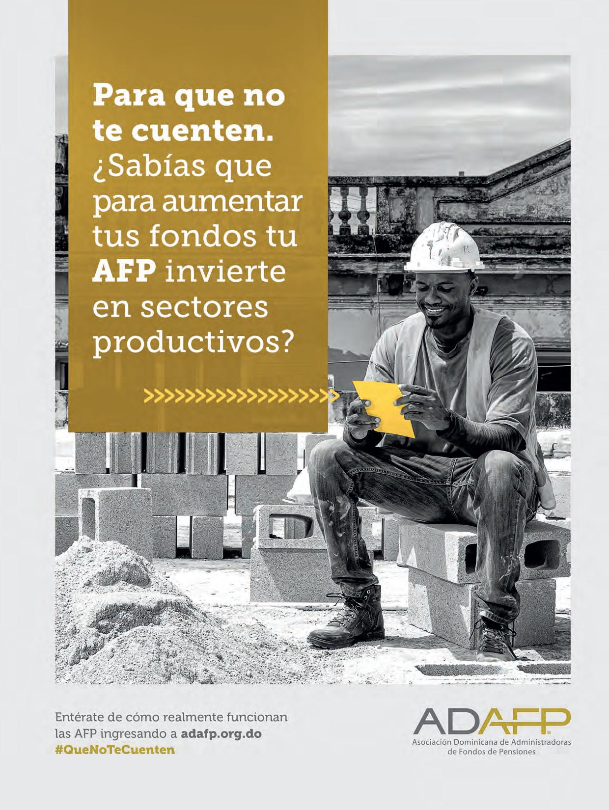 INTELIGENCIA DE NEGOCIOS MANUEL IGNACIO MARTÍNEZ CEO DP WORLD DOMINICANA RD$ 450.00 7 469340 600159 El listado de los Directores Ejecutivos de las grandes empresas y organizaciones. 125 SUPLEMENTO SERVICIOS DIGITALES FINANCIEROS La intermediación digital financiera avanza imparable. 97 SUPLEMENTO ESPECIAL AFP Descubra cómo estas instituciones trabajan para garantizar un retiro digno. 57 SUPLEMENTO ESPECIAL BID La reunión anual que cambió al Grupo BID y potencialmente a la región. 167