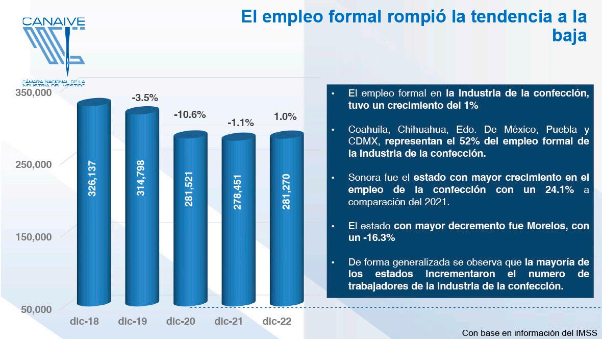 Informó con respecto a la Industria del Calzado que “Antes de la pandemia se registraron ante el IMSS 65,000 empleos y ahora en este años 2023 todavía tenemos un déficit de 4,000 empleos, por lo que en este aspecto contamos con un área de oportunidad para captar a la gente que trabajaba en la industria y durante la pandemia se fue a los trabajos informales”.