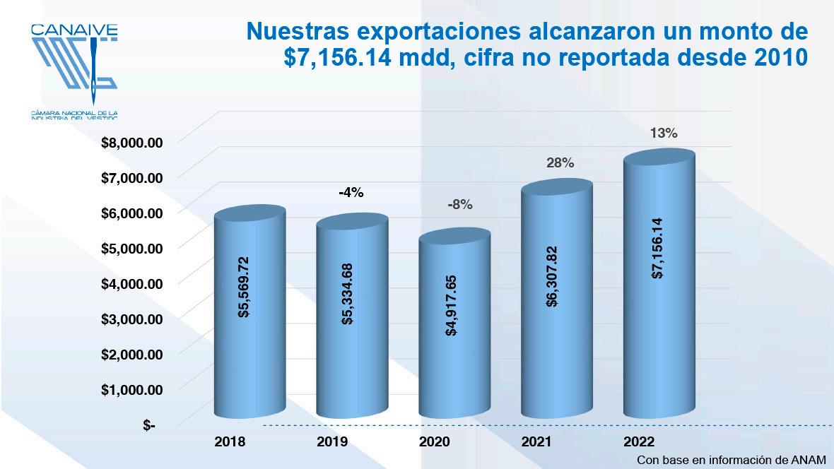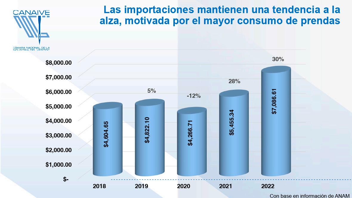 Respecto a la producción, mencionó que en el 2022 la industria cerró con 203 millones de pares de zapato y con un consumo nacional de 296 millones, de aquí observamos que el crecimiento de las importaciones se dispararon el año pasado a 126 millones de pares, con un crecimiento de un 23% con respecto al año 2021.