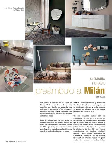 IMM en Colonia (Alemania) y Abimad en Sao Paulo (Brasil) fueron de las primeras en celebrarse este año y en las mismas ya vemos un adelanto de lo se espera prevalezca el resto de 2014. “Si me preguntan cuáles son las novedades y lo que se va a reflejar en el mercado del mueble tengo que decir que el estilo será uno cálido, simple y natural, con énfasis en los tonos brillantes y las maderas. De igual modo, viene la atmósfera de los ’50, con toques escandinavos en muchos diseños”, destaca Carlos Colom, propietario de LOFTHaus, localizado en la avenida Roosevelt en Puerto Nuevo, y quien acaba de regresar de ambas ferias.
