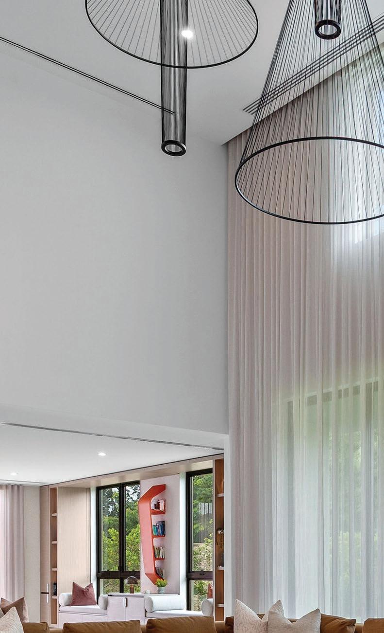 Sobre la sala, las escultóricas lámparas Medusa de Ole Lighting (de Casalú) se convierten en protagonistas visuales.