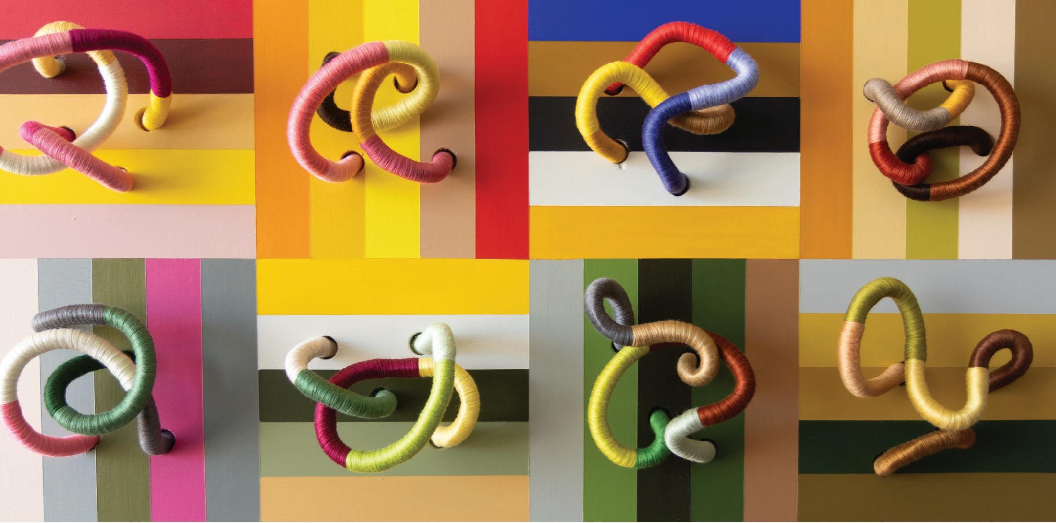 entiende la forma como una relación: color y fibra, imagen y gesto, presencia y ausencia. Sus pinturas escultóricas surgen de técnicas textiles repetitivas que activan lo táctil como sostén emocional, transformando la superficie en un lugar de cuidado.