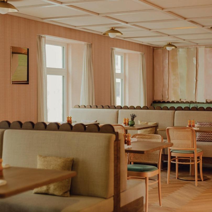 El vestíbulo, el salón y el restaurante se conciben como un gran salón moderno: abierto, fluido y profundamente sensorial.