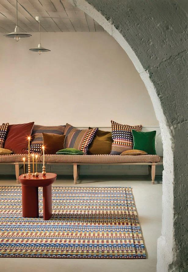 Su colección de lámparas, alfombras, cojines y bolsos tejidos a mano en fibras naturales demuestra que la modernidad no está reñida con la tradición, sino que puede nutrirse profundamente de ella.