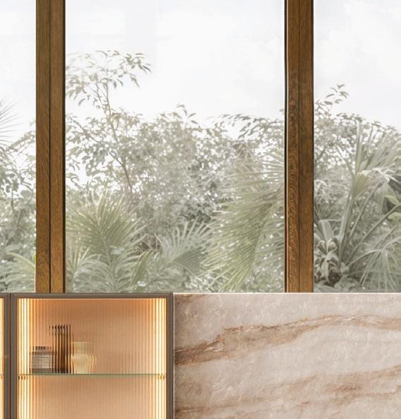 El interior revela un trabajo meticuloso: baño principal en mármol Calacatta Viola con acabado fluted y herrajes negro mate; baños secundarios con texturas de concreto y piedra que equilibran modernidad y calidez. En el exterior, la piscina a sfioro, integrada a la terraza y con acceso directo desde la habitación principal, la sala y la cocina, transforma la residencia en un escenario natural para el disfrute, el entretenimiento y la contemplación privada.