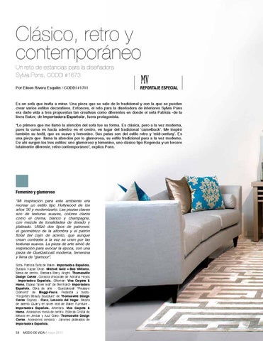 Clásico, retro y contemporáneo Un reto de estancias para la diseñadora Sylvia Pons, CODDI #1673 Por Eileen Rivera Esquilín / CODDI #1711