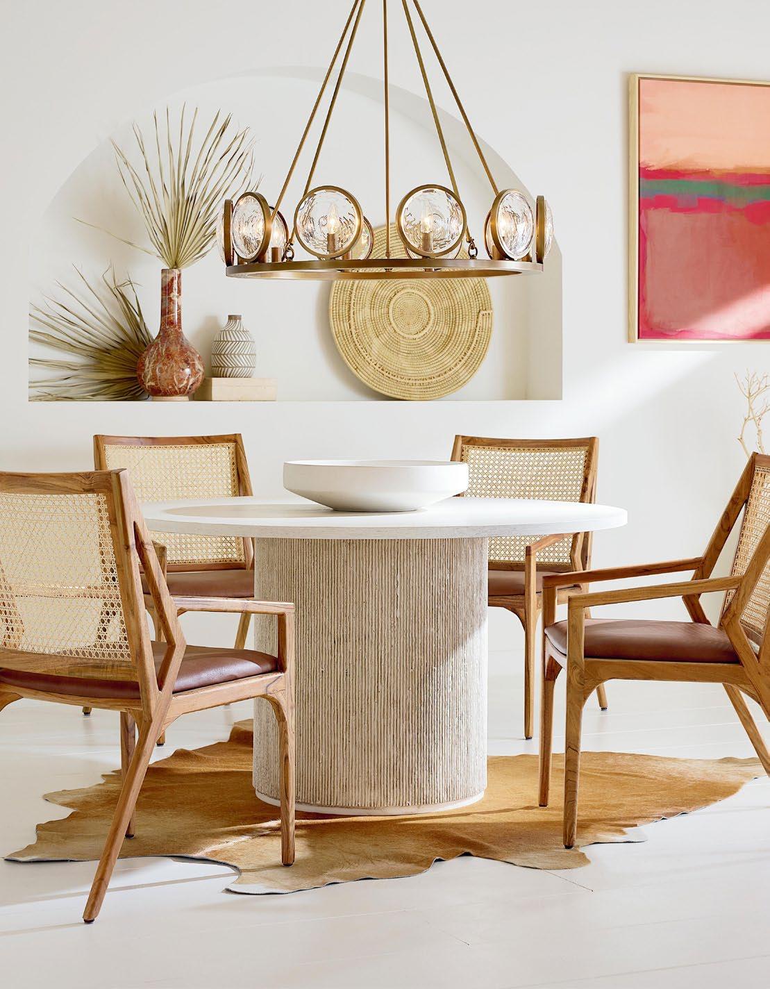 • La figura liviana del Torcello Chair de Arteriors y el textil fresco y orgánico van por la línea que mas utilizo en mis