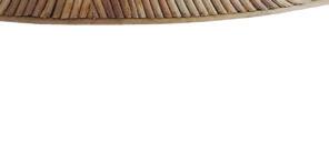 Perpendicular al mueble del fregadero, y mirando hacia el comedor, una barra completa con materiales idénticos a los de la cocina, se enfrenta al comedor donde predomina la madera. La impactante estantería rústica en forma de canoa descansa sobre una canal de piedras de río, un detalle que destaca este proyecto arquitectónico de otros.