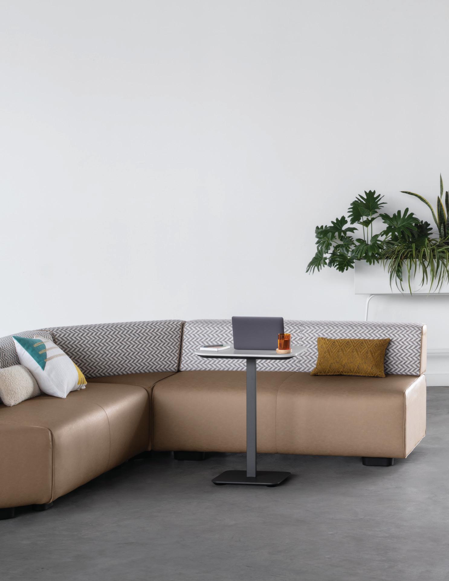 Scénario 2. Modular sofa, designed by Sacha Lakic. Gorizia. Cocktail tables, designed by Thierry Picassette. Midnight. Floor lamp, designed by Fabrice Berrux. Made in Europe.