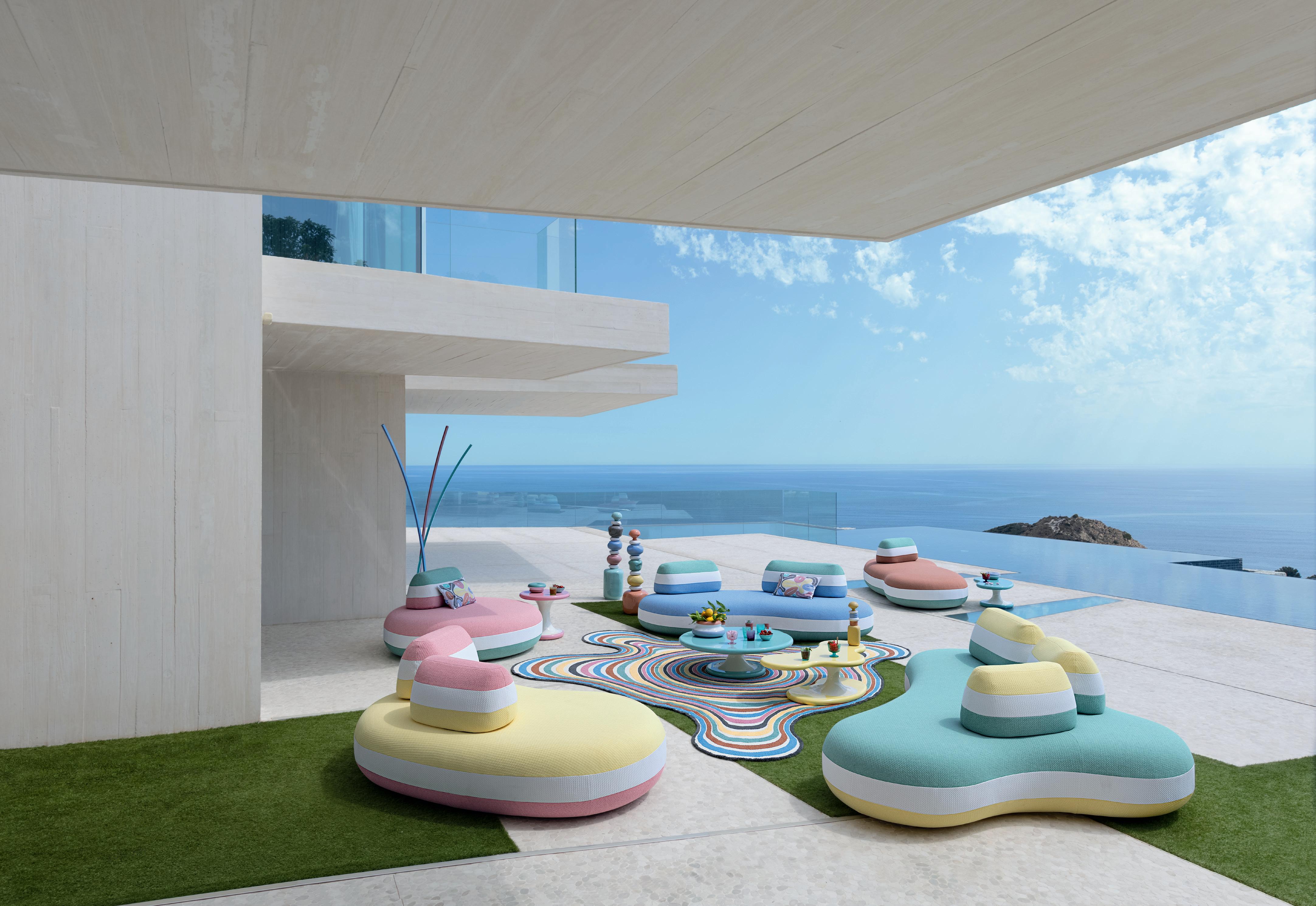 Portuguese visual artist Joana Vasconcelos designed the Bombom collection for Roche Bobois. It comprises a range of seats and decorative accessories with bold, delectable shapes suited to both indoor and outdoor use.