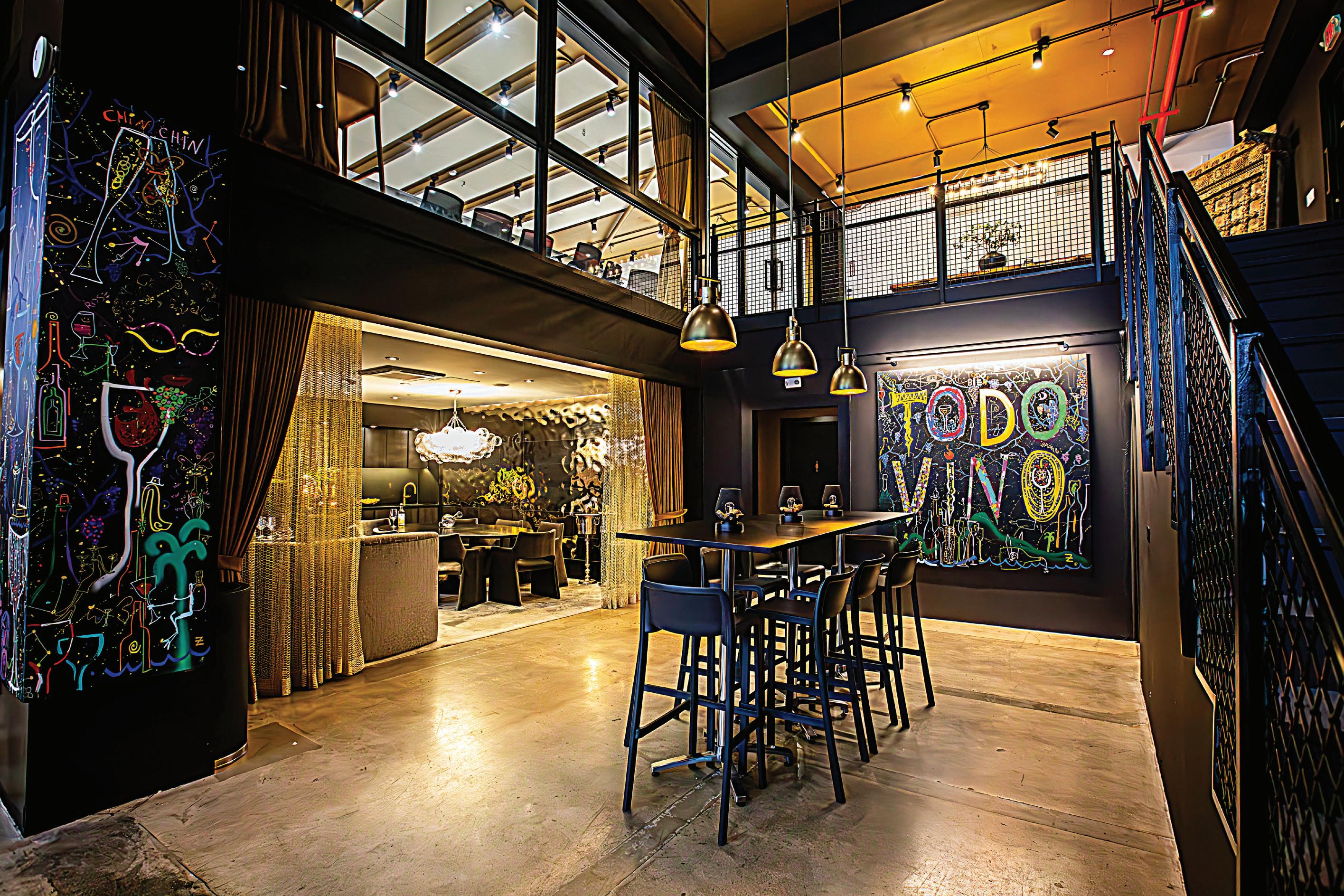 El área de estar cuenta con un sofá de curvas suaves, que refleja las líneas suaves de una media tubería, y utiliza materiales como el cemento pulido, el concreto armado y acabados epóxicos entre otros. El uso del color en las piezas conceptuales, las obras de arte, las texturas en tejidos de cojines y los elementos decorativos en sus interiores, destacan la pasión por crear ambientes de ensueño, donde se traspasan los límites artísticos junto a la habilidad para fusionar la creatividad con la tecnología.