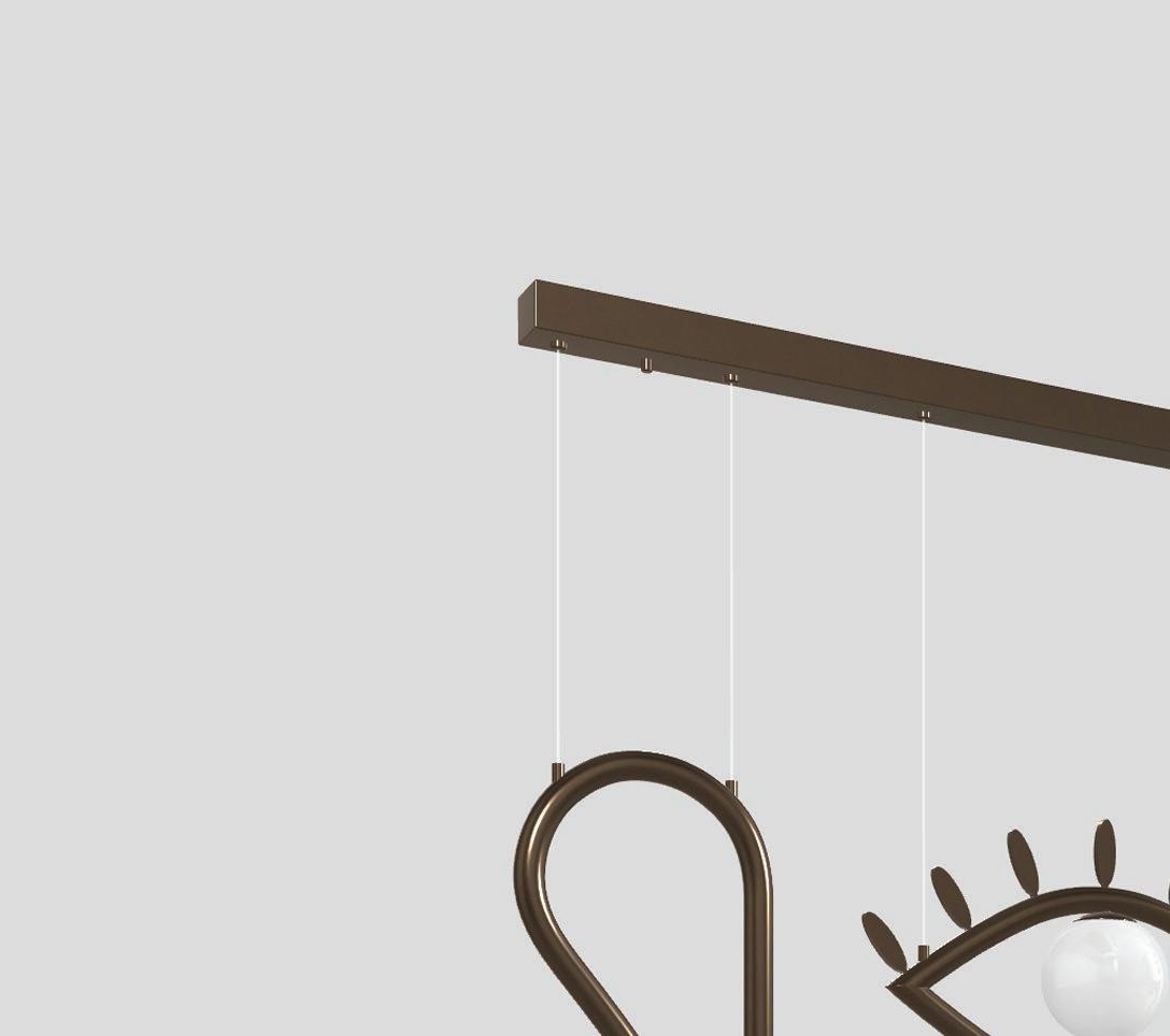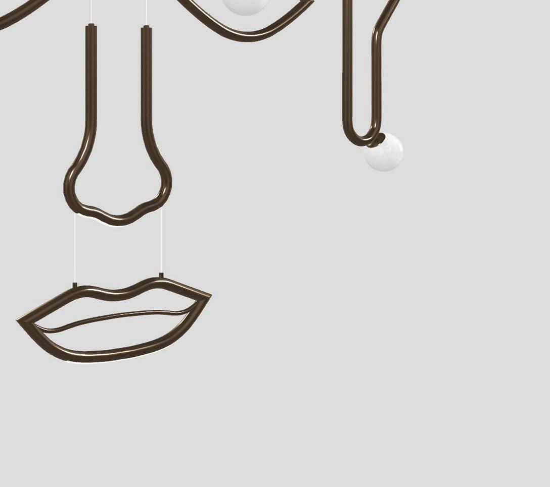 Pues les cuento que esto lo pensó y ejecutó un dúo de diseñadores: Nava + Arosio. Ambos han desarrollado una luminaria que divulga, en un vocabulario estético, el concepto de que la luz graba los rostros y da forma a los ambientes. Visio es una lámpara colgante con estructura tubular de metal, pintada y pulida con acabado color chocolate oscuro y difusores esféricos triplex de cristal Murano blanco opalino y fuente de luz, LED. Está disponible en cara completa, media cara y los elementos individuales que la componen.