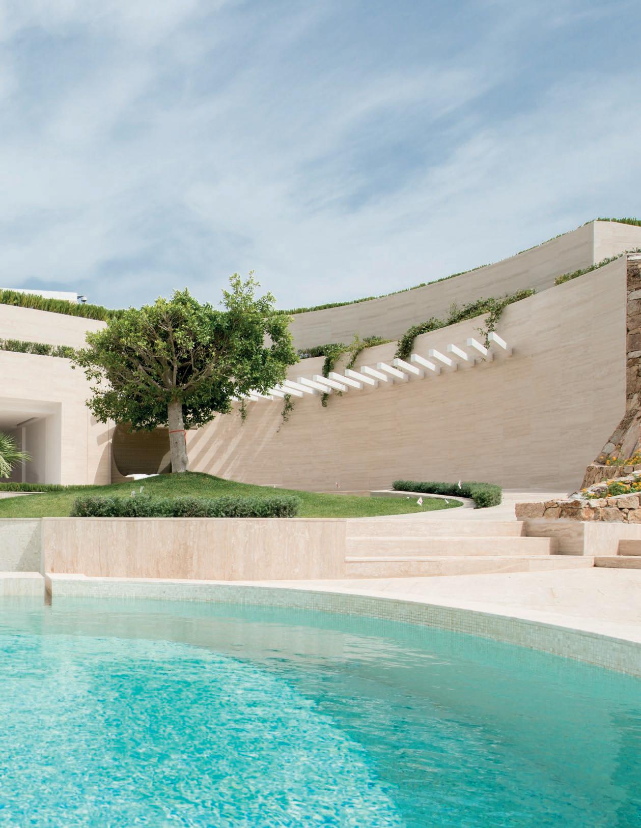 Concebida como un poliedro dinámico, la villa evoca nuevas emociones. La fachada arquitectónica ofrece la clásica e imponente imagen de una fortaleza recortada contra el horizonte. “Nuestra forma de diseñar y construir está profundamente arraigada en un ideal de belleza italiana que nunca es estático, sino que se traduce cada vez en un estilo único que surge de los deseos del cliente.