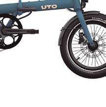 La bicicleta elèctrica plegable UTO OG16 combina lleugeresa, potència i un disseny elegant. Dissenyada per seguir-te a qualsevol lloc, es plega completament en només 10 segons i pesa únicament 16,5 kg amb bateria inclosa. El seu motor brushless de 36 V 250 W ofereix fins a 60 km d’autonomia, sensor de parell al pedaler, frens de disc hidràulics Shimano MT200 i pneumàtics Schwalbe Pick-Up amb protecció antipunxades. El marc i la forquilla d’alumini amb soldadures llises garanteixen resistència i estil. Inclou il·luminació davantera direccional i posterior Spanninga.