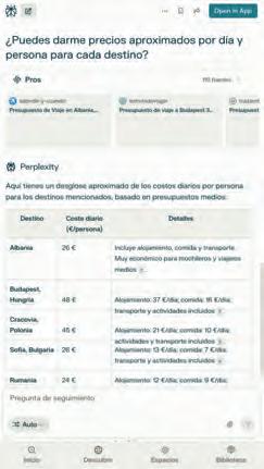 16. Como tu agencia de viajes. Perplexity Pro, el buscador con IA incluido por ser de Movistar, encuentra viajes rápido y al mejor precio.