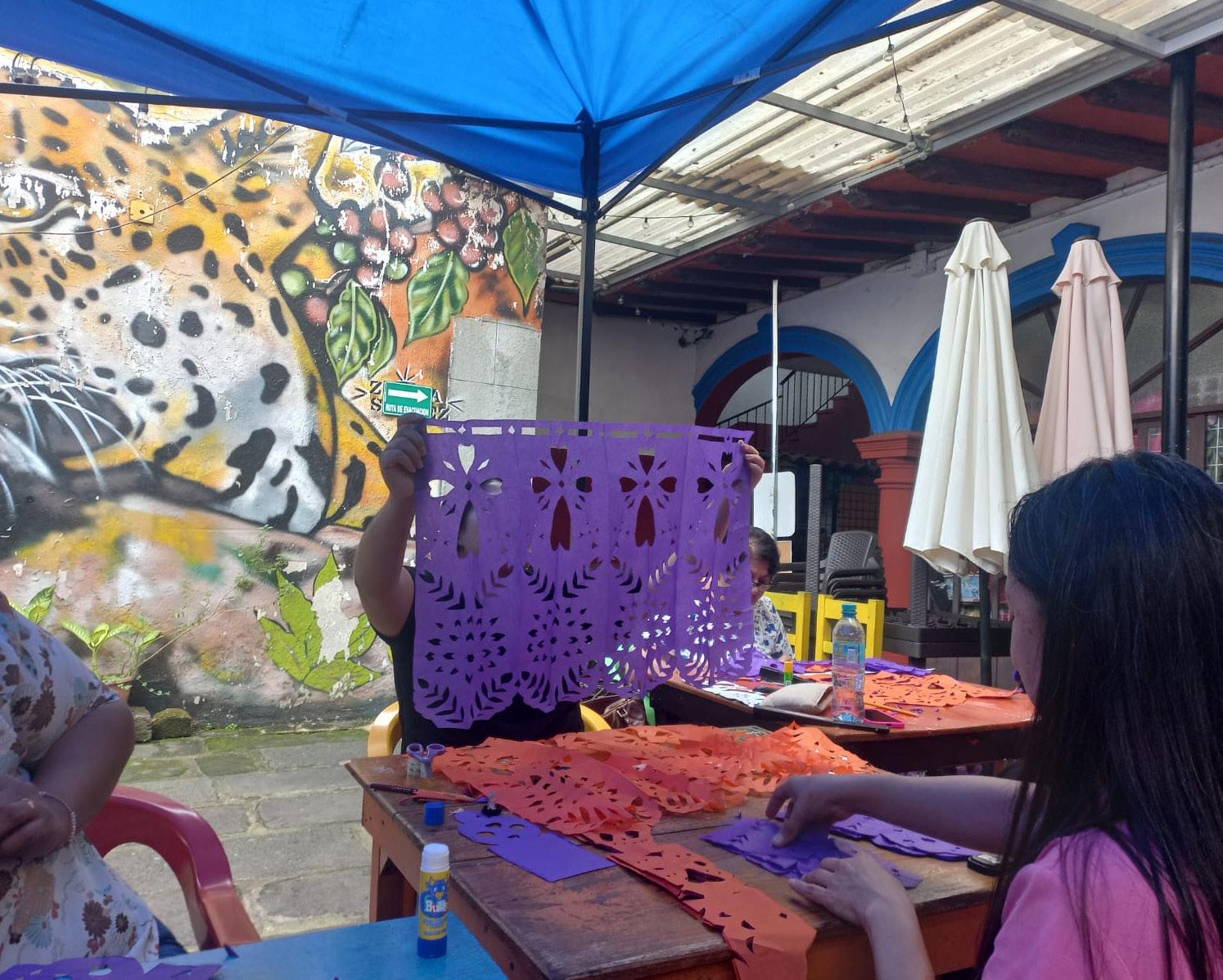 Las personas que han tomado el taller de papel picado se llevan una valiosa, excelente experiencia, realizan papel picado y festones, así aprender a crear sus diseños personales para los altares de muertos.