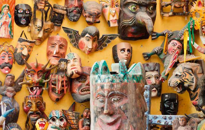 Las piñatas, los esqueletos y otros tipos de artesanías mexicanas celebran la herencia cultural local.
