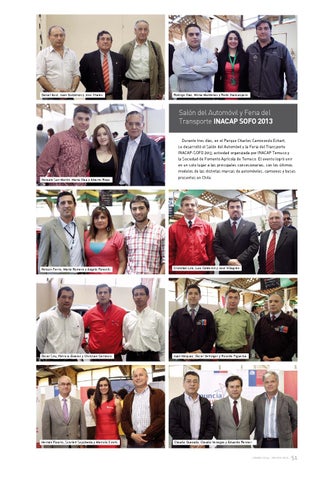 Salón del Automóvil y Feria del Transporte INACAP SOFO 2013 Durante tres días, en el Parque Charles Caminondo Echart, se desarrolló el Salón del Automóvil y la Feria del Transporte INACAP-SOFO 2013, actividad organizada por INACAP Temuco y la Sociedad de Fomento Agrícola de Temuco. El evento logró unir en un solo lugar a las principales concesionarias, con los últimos modelos de las distintas marcas de automóviles, camiones y buses Gonzalo San Martín, María Olea y Alberto Rivas.