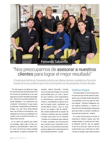 “Nos preocupamos de asesorar a nuestros clientes para lograr el mejor resultado” El tradicional estilista de Concepción enfatiza que obtener óptimos resultados es fruto de la relación de mutua confianza que ha ido construyendo con los penquistas, durante décadas. Estética integral