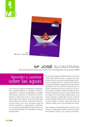 En el mes de agosto de 2007 apareció la primera revista Nu2, definida como un espacio de intercambio artístico cuyo punto de partida para la producción creativa es el mar. la primera portada fue un barquito de papel, navegando en las procelosas aguas de la Isla de lanzarote, atenazado por los muchos vaivenes económicos, políticos y culturales en que un proyecto privado de este tipo se ve envuelto. Al barquito le siguió una lata de sardinas con lápices de colores que pintaban peces, y así han ido creando en cada nuevo número un poema visual, dibujando y definiendo una trayectoria con un sello propio y original, secciones llenas de creación, diseño y amor por el trabajo bien hecho. Sus creadores, Fernando Barbarin, director de la revista, y Guadalupe Carracedo, directora de arte, han obrado el milagro; mar y arte se unen defini-