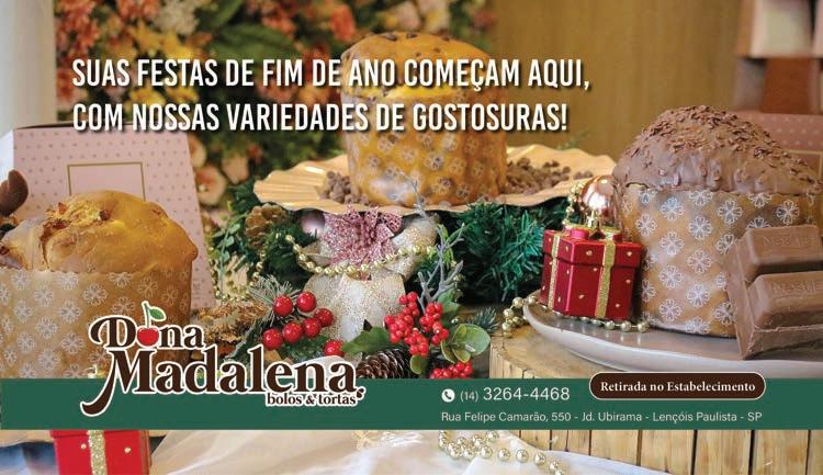 confeitaria ocorreu em dezembro de 2009 e recebeu o incentivo do esposo e da filha Letícia. Desde então, são muitas conquistas que profissionalizaram a empresa, ampliando a oferta de produtos e fazendo do nome uma marca de sucesso na região. O espaço Dona Madalena Bolos e Tortas ganhou nova vida, com requintes de carinho na decoração.