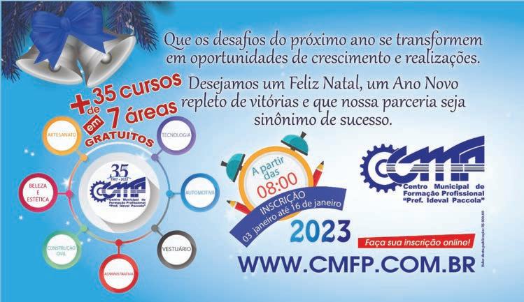 PAULINHA MACIEL - “Ao chegar o final de mais um ano, a equipe do salão Paulinha Maciel renova suas energias para que no próximo ano possamos continuar oferecendo todo carinho e afeto dedicados, há mais de 20 anos, a clientes e amigos! Desejamos que este Natal seja de renascimento de um novo tempo de saúde e prosperidade para todos! Feliz 2023!”