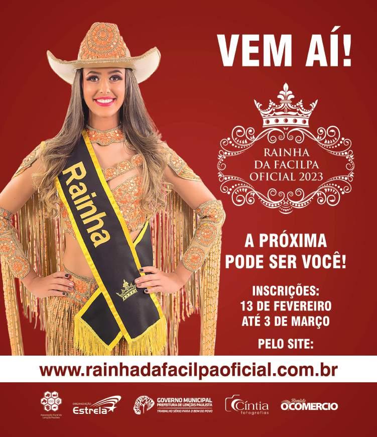O grande evento, que reúne muito charme, beleza e simpatia é realizado pela revista em parceria com a Associação Rural e Prefeitura de Lençóis Paulista. As inscrições, aliás, vão estar abertas entre os dias 13 de fevereiro e 3 de março, apenas pelo site www. rainhadafacilpaoficial.com.br.
