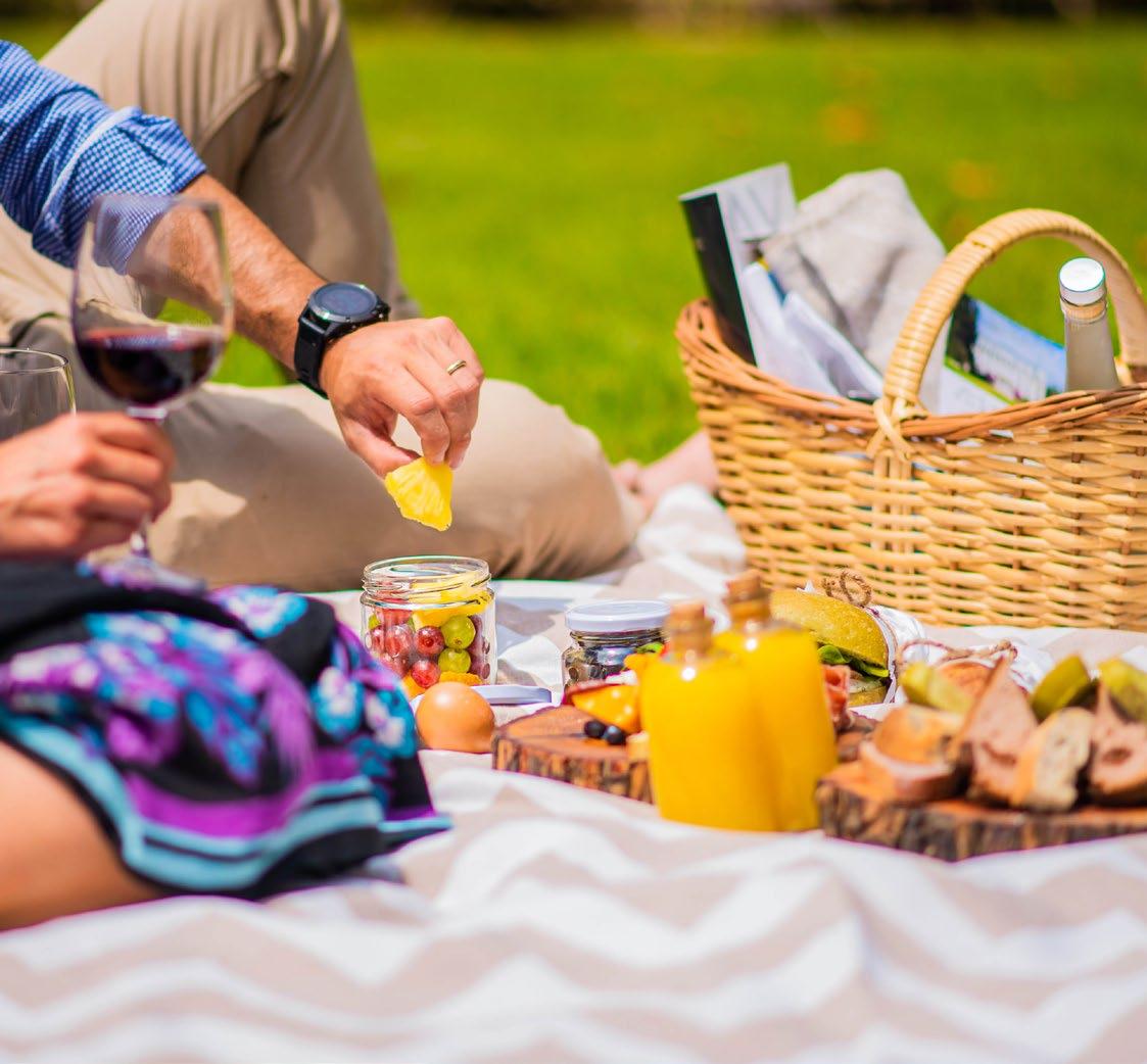 Salmón fresco adobado en mostaza a la antigua. Picnic de los huéspedes.