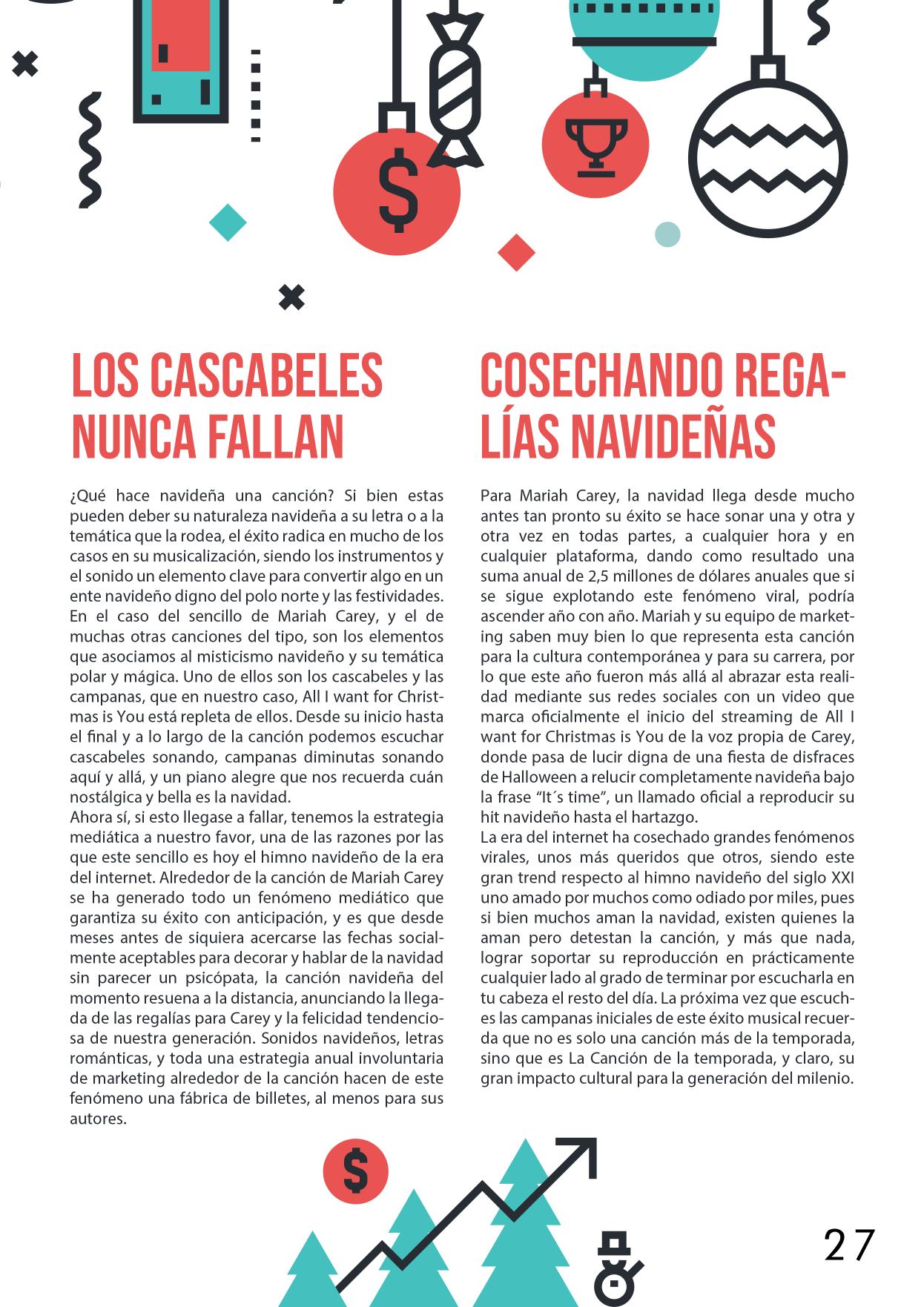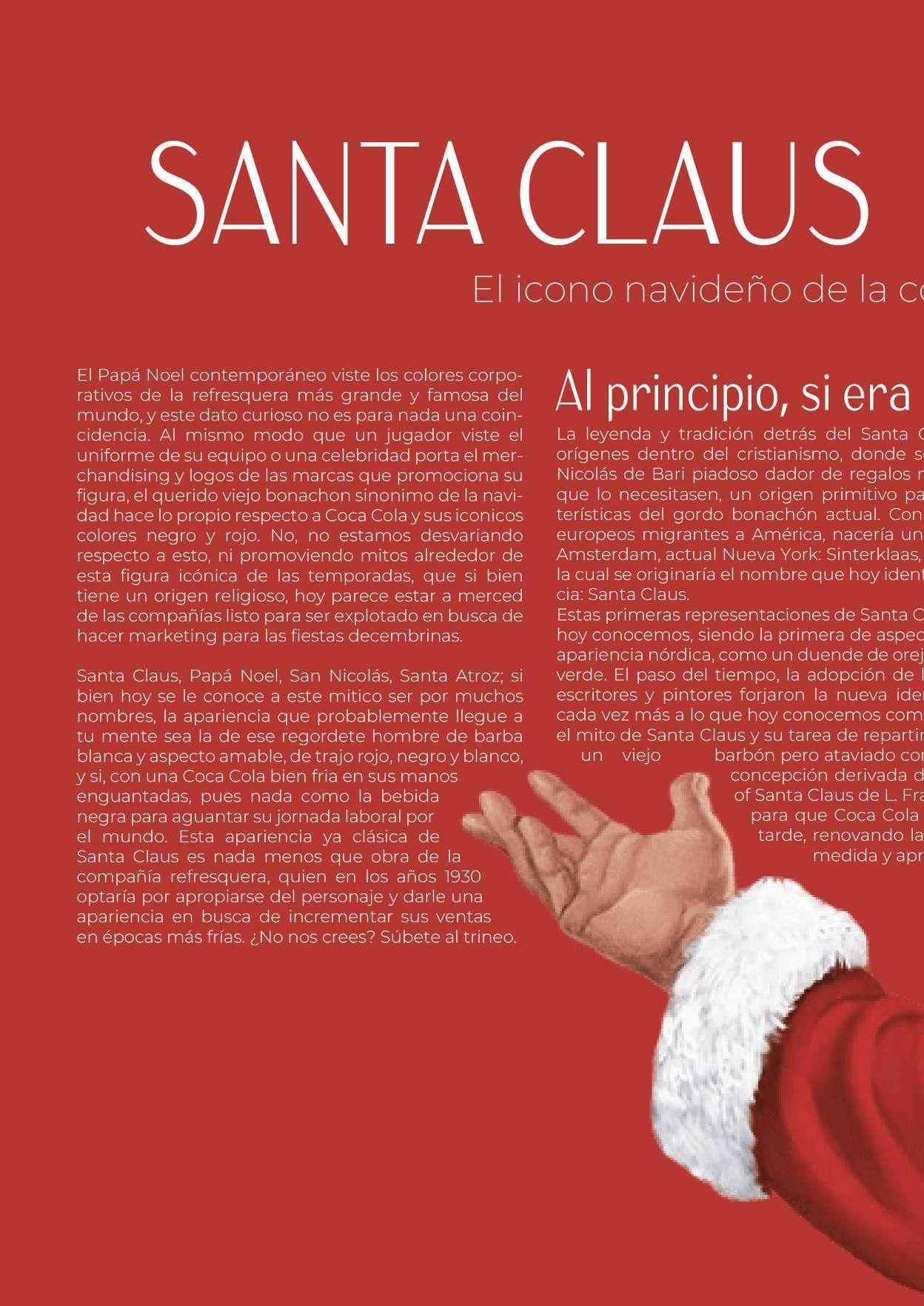 Finalmente llegamos al último mes de este 2022, que, siendo una revista aún joven, nos llena de orgullo acompañarte como lector a través del mundo del marketing, el diseño, la publicidad y el entretenimiento en una de las temporadas más cálidas, nostálgicas y altamente publicita rias del año, la temporada navideña. Por ello, traemos para ti los temas en tendencia para este mes de gran actividad publicitaria, donde el diseño y el marketing hacen mancuerna para dar rienda suelta a las ventas mediante las emociones que estas fechas evocan en nuestros corazo nes y en nuestra mente.