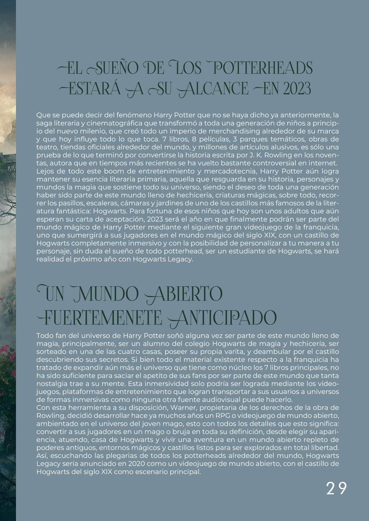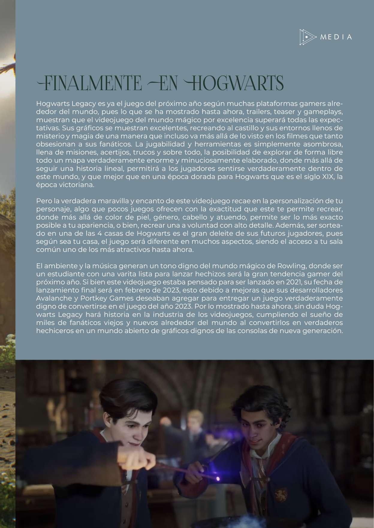 Por su parte el cine y la televisión tienen hoy dos grandes innovaciones que han llegado para quedarse, una que hace más prácticas e inmersivas las producciones contemporáneas conocida como The Volume; y la otra, el siguiente gran filme de James Cameron, que está dispuesta a revolucionar una vez más los efectos visuales para siempre como lo habría hecho su predecesora en 2009. Y la magia del mundo mágico de Harry Potter regresa a las plataformas gamer de todo el mundo el próximo año con uno de los videojuegos de mundo abierto más anticipados hasta ahora, Hogwarts Legacy, el cual buscará ganarse el título del mejor juego del 2023.