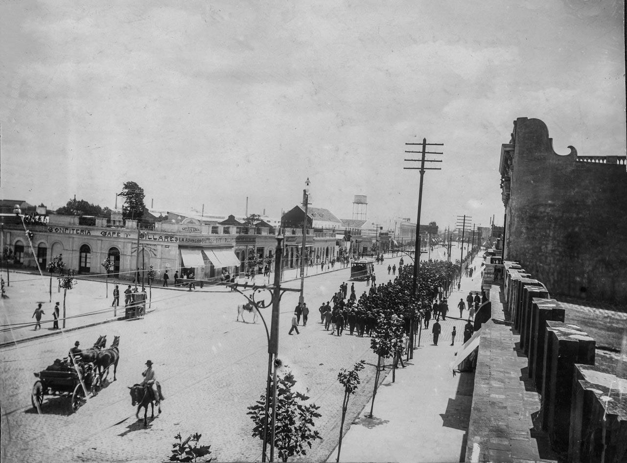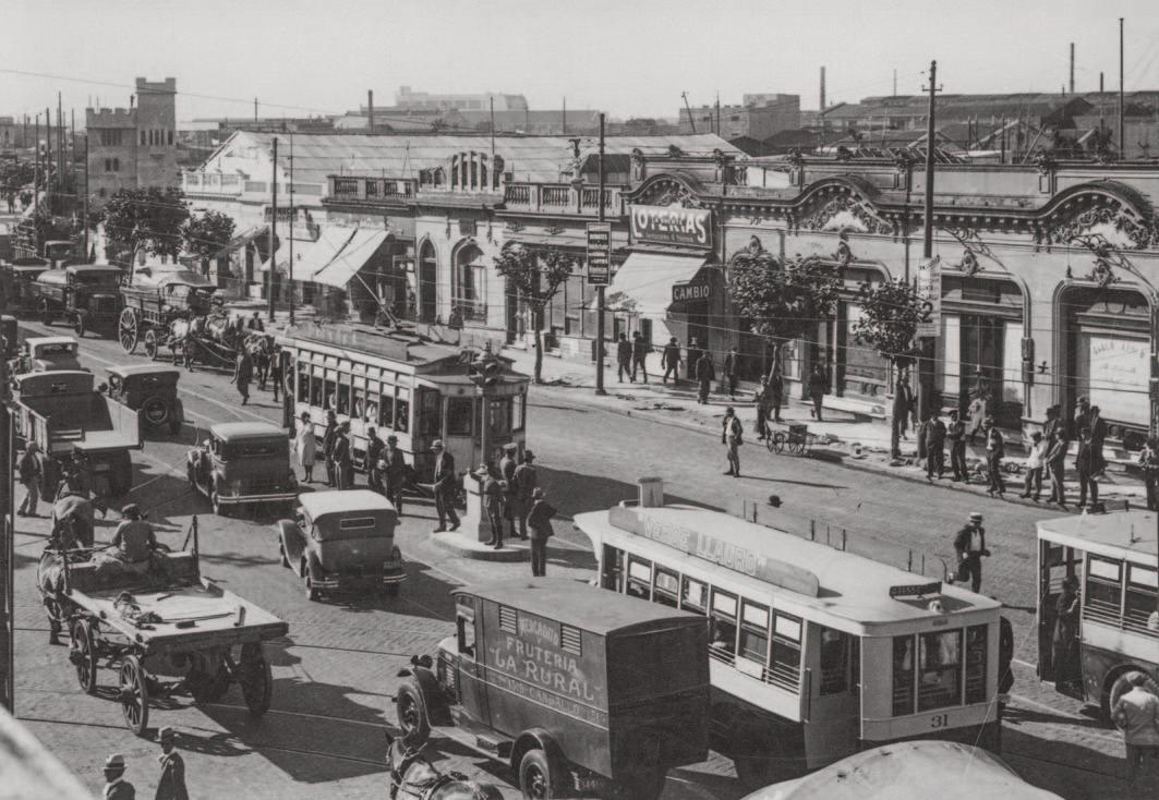 Transbordador puente Nicolás Avellaneda que una La Boca con Avellaneda. Año de la foto: 12/8/1928. Se observa el tráfico habitual de obreros y empleados de frigoríficos que regresaban de sus tareas. Un camión de marca Morris, como se lee en su capot, transportaba bidones de metal.