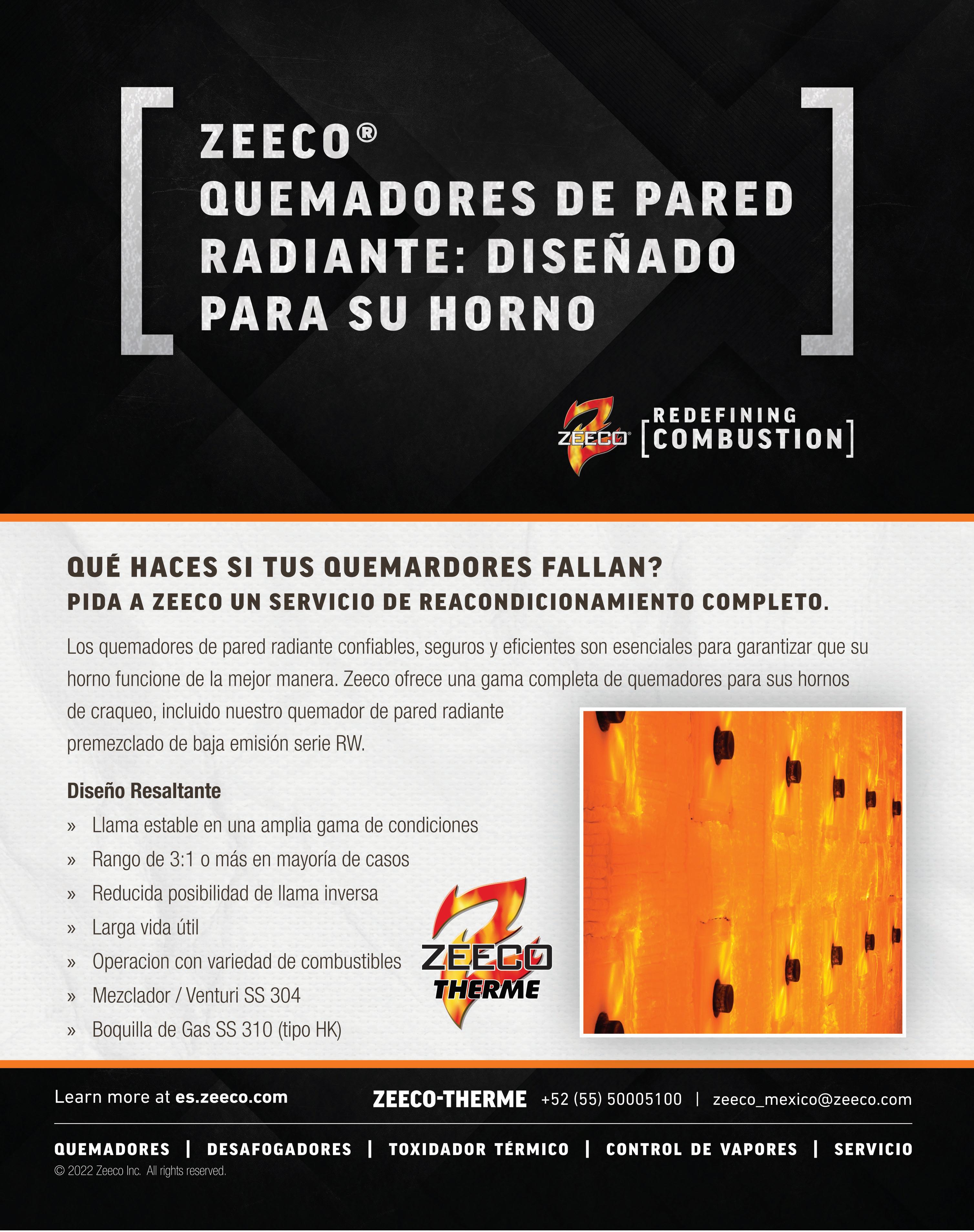 • Rango de NOx pronosticado - Tiro natural: 40 mg/ Nm3 (20 ppmv) a 100 mg/Nm3 (49 ppmv)