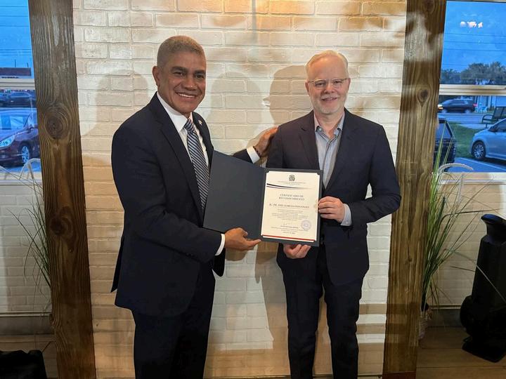 Por su destacada trayectoria profesional en un emotivo acto con empresarios dominicanos fue reconocido por el Consulado Dominicano de Orlando y su honrable consul Holi Matos, quien destacó la incansable labor del Dr García en el campo de la medicina y su compromiso con la excelencia clínica