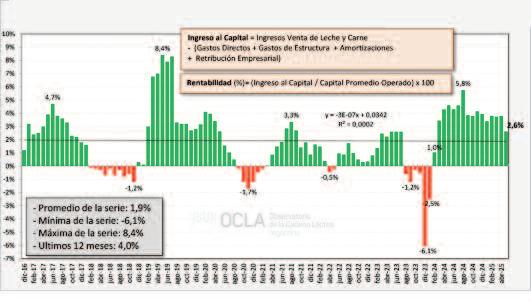 “Como gran promedio de tres estratos de tambo (chico mediano y grande) y en 10 cuencas lecheras, se aprecia que la rentabilidad es positiva desde hace 16 meses e incluso en los últimos 12 meses llega al 4% anual sobre el capital operado (incluyendo la tierra propia)”