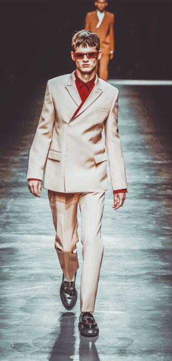 Su primera colección ‘menswear’ lo deja claro, donde los trajes refinados con toques de sensualidad, algunos de ellos decorados con accesorios excéntricos como cuellos brillantes y sublimes corbatas o lazos asegurados alrededor del cuello, redimensionaron la esencia sofisticada, lujosa y cómoda que caracteriza a Gucci. El clásico Jacquard, la atemporalidad de los mocasines Horsebit y el icónico bolso Jackie 1961 fueron protagonistas de una noche que auguraba minimalismo en todo su esplendor, pero que sorprendió con una serie de looks lúdicos.