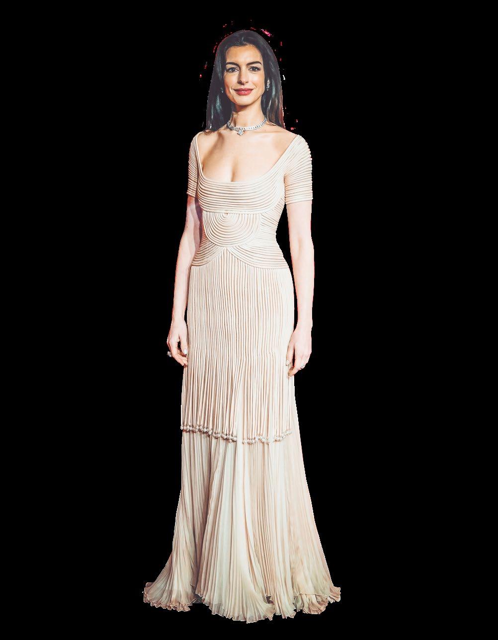 El diseño fue creado por el diseñador francés Thierry Mugler, conocido por vestir a reconocidas celebridades como Beyoncé y Lady Gaga. Se trataba de un look tomado del archivo del desfile Mugler Alta Costura Otoño-Invierno 1995/1996. Este consistía en un traje de detalles cromados que dejaba al descubierto algunas zonas de su cuerpo como su abdomen, su busto, partes de sus brazos y piernas, y sus glúteos.