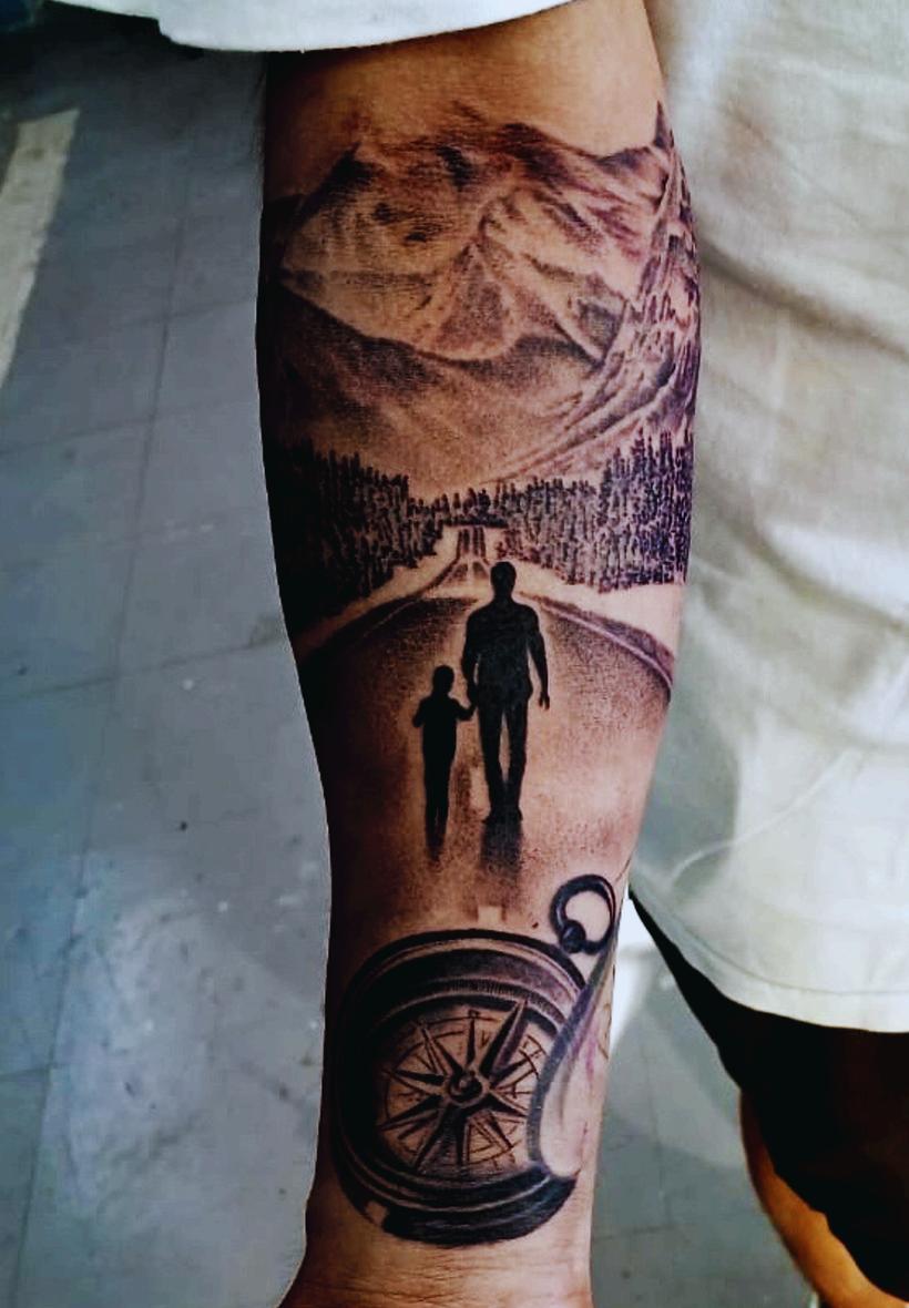 Al inicio él no quería tatuarme; decía que todavía no estaba listo, que le faltaba aprender. Fue hasta que tomó confianza en su trabajo que empezó a marcarme la piel,y desde ahí crecimos juntos, él como tatuador y yo como lienzo.