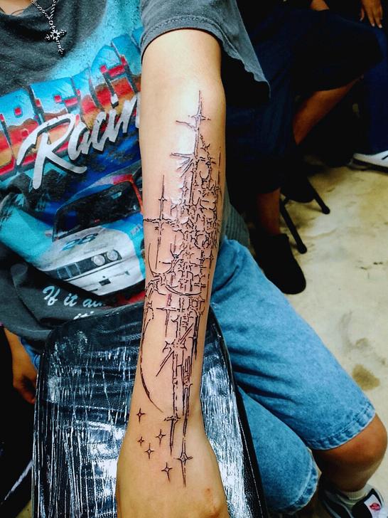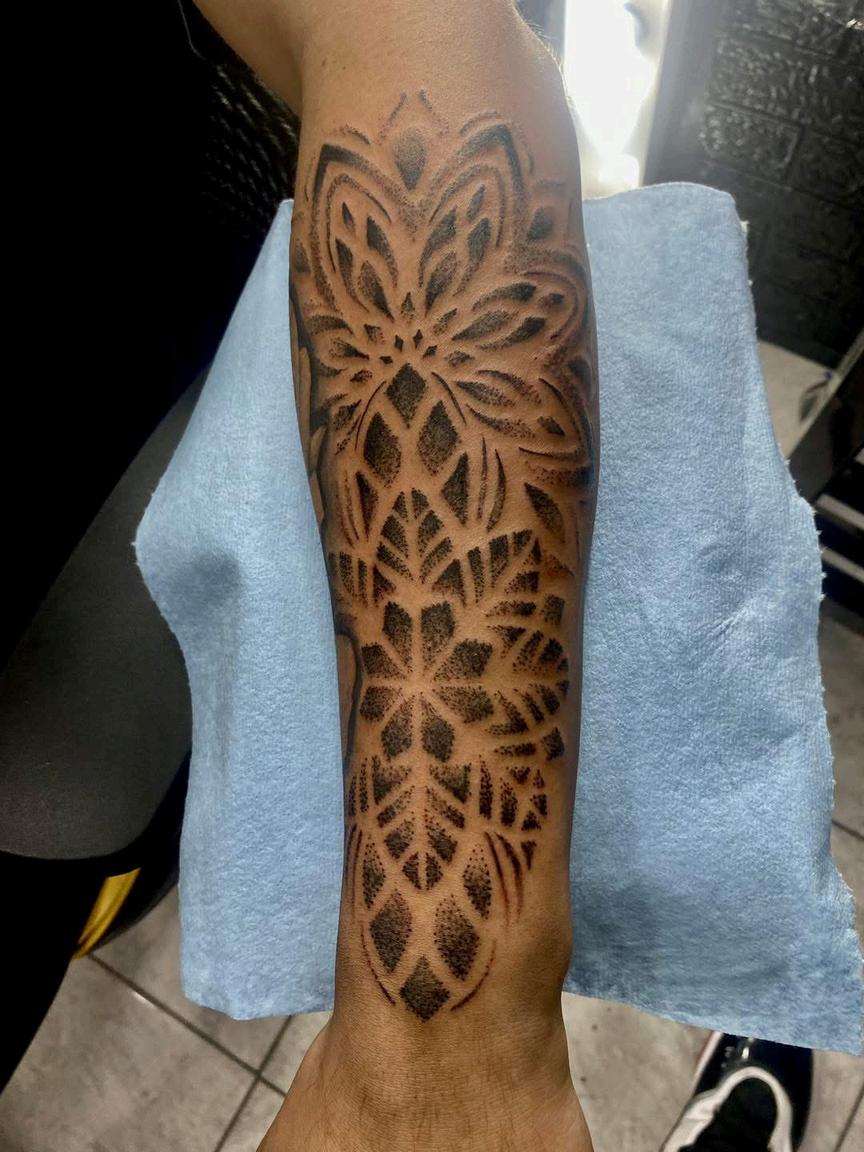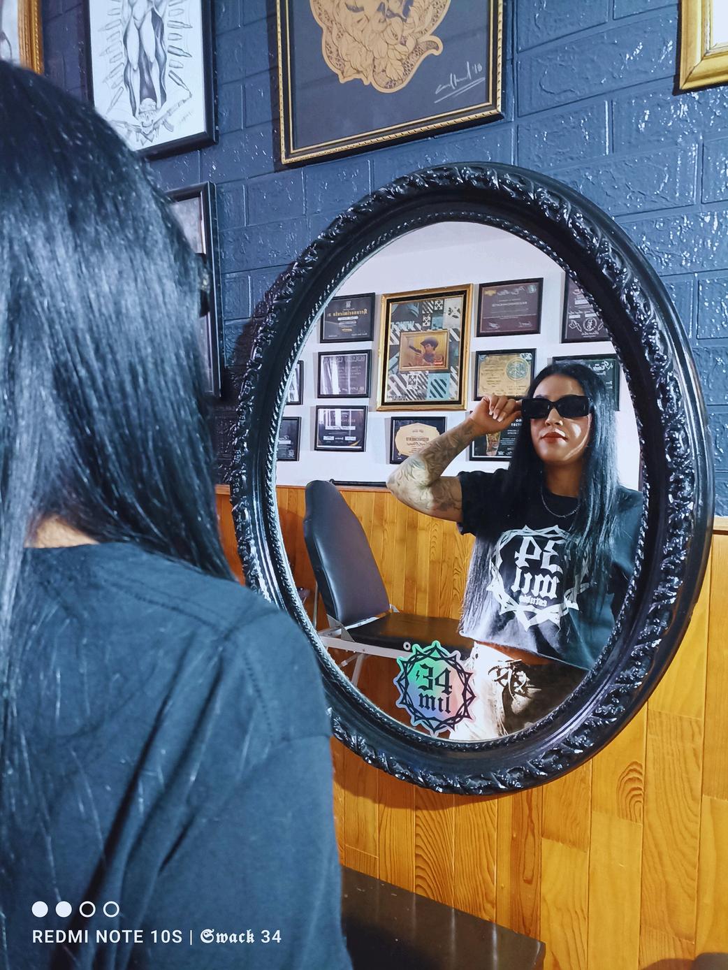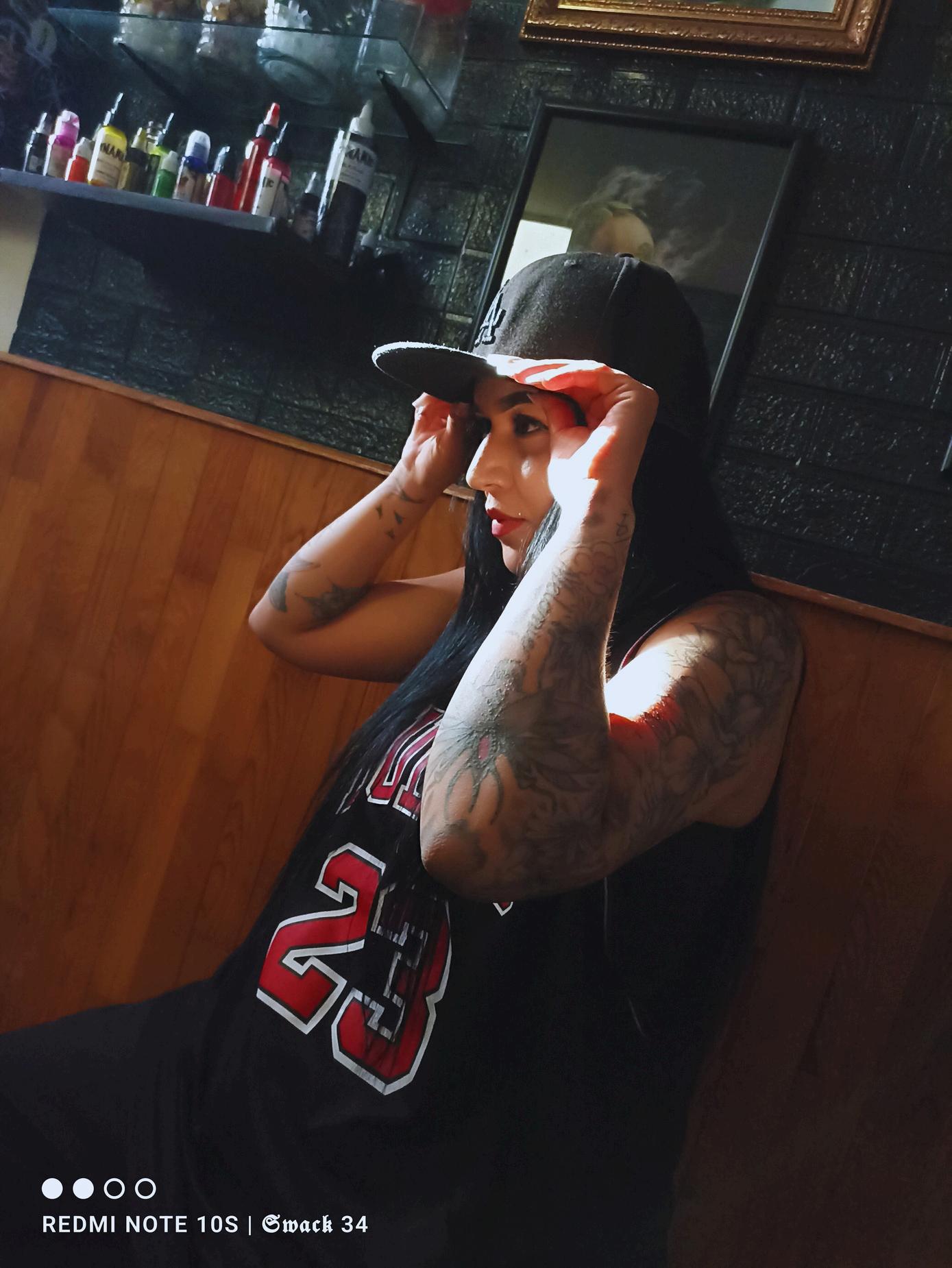 Hoy llevo varios tatuajes,y todos —sin excepción— han sido realizados por mi esposo, Swack Macías. Aún me quedan espacios, aún hay proyectos esperando su turno. El primero que él me tatuó fue el nombre de mi hija,uno de los más significativos para mí, junto con el nombre de mi segundo hijo.