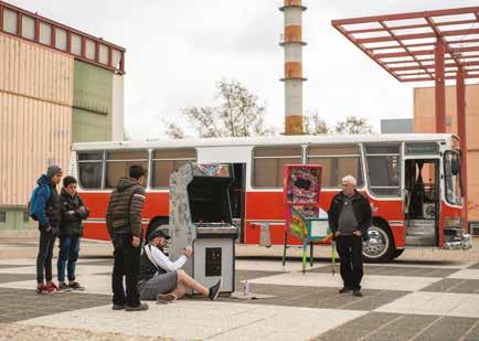 Fue la delirante idea de Hernán “el Pela” Zábala, eximio conductor de colectivos, que le comentaba a Hernán Sáez (uno de los padres de NAVE) las ganas de tener un colectivo propio con los arcades. “Nos ahorramos los fletes de las máquinas y, además, podemos salir de gira. Como una banda de rock”.