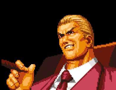 el muy querido por todos Rugal Bernstein, traficante de armas y drogas, aficionado a las peleas a puño limpio y propietario de la patada más ridículamente fuerte en un juego de pelea. La idea de Rugal es juntar a los combatientes más fuertes del mundo y enfrentarlos para encontrar rivales a su nivel. Si bien la trama del ’94 casi no pasaba de esta lógica de torneo, tenemos momentos en los que vemos cómo SNK empezaba a pensar en una