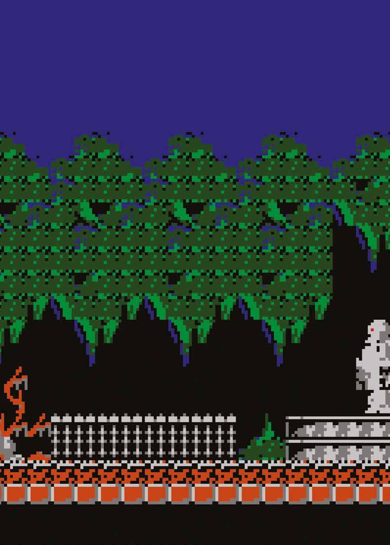 Castlevania (1986) fue dirigido por Hitoshi Akamatsu, un fanático de las películas de terror que quería crear un juego que generara en el jugador la sensación de estar en una de esas películas. Esta decisión fue la piedra angular del juego y algo presente en todo elemento: la dirección artística optó por diseños más realistas y tonos más opacos: en el Castlevania no hay monstruos de apariencia cómica, no hay fondos claros. Jugamos y vivimos la noche de terror del castillo. La música acompaña la misma decisión, saltando de la aventura, con clásicos como “Vampire Killer” y “Wicked Child” a temas llenos de tensión como “Nothing to lose”.