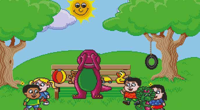 En ese despiadado mundo de guerra, la empresa Realtime Associates publicó Barney’s Hide & Seek Game para Sega, un colorido juego de escondidas en el que controlamos al dinosaurio violeta en su encarnizada búsqueda de sus amigos, repartidos a lo largo de cuatro niveles. En el camino, Barney parará para oler las flores y hacer comentarios del entorno. “Habrá que encontrarlos a todos para ganar”, es lo primero que uno piensa..., pero no: los niveles terminan al llegar al extremo derecho de cada escenario, sin importar si encontramos o no a los amigos del dinosaurio violeta. Preocupados porque los jugadores más jóvenes no pudieran presionar tanto tiempo la derecha en el joystick, la gente de Realtime Associates implementó un elemento más en el juego para ayudarlos: si el jugador no presiona nada en el control por unos segundos, Barney