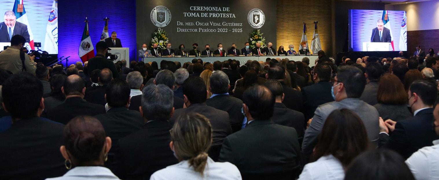 La mañana de este jueves 15 de diciembre de 2022, en una colosal ceremonia, el distinguido ginecólogo y oncólogo: Dr. med. Oscar Vidal Gutiérrez, tomó protesta del título concedido por nuestra comunidad como Director de la Facultad de Medicina y Hospital Universitario “Dr. José Eleuterio González”, en el Auditorio Polivalente de nuestra Institución frente a estudiantes, profesores, personal administrativo, autoridades universitarias, servidores de función pública y jurisdiccional, invitados especiales y familiares.